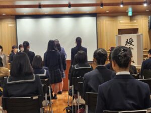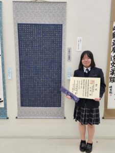 書道部授賞のお知らせ 書道部2年大本楓さんが県総合文化祭で近畿総文推薦賞を授賞し表彰されました。これを受け、来年の出品に向けてさらに大きな新しい作品制作に取りかかります。なお、2年岡田安さんも特選を受賞しました。 FacebookX投稿日: 2025年11月10日
