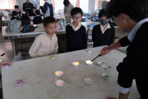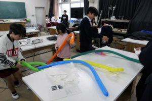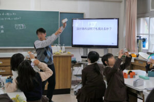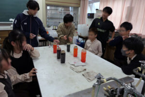 11月27日(木)、本年度もSSH事業の小高連携の一環として、本校サイエンスリサーチ科2年生の生徒が近隣の尼崎市立清和小学校3年生と4年生に、数学や理科に関する6分野で本校生徒が指導し、算数の授業や理科の実験・観察実習を行いました。