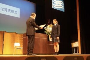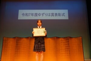 本校3年都竹結花さんが、第2回世界ジュニアトランポリン競技選手権大会兼第31回世界年齢別トランポリン競技大会において、シンクロナイズドトランポリン17-21歳の部で2位に入賞した功績を讃えられ、令和7年度ゆずりは賞を受賞しました。