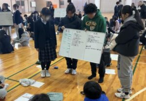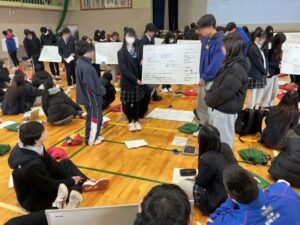 また、3月9日(月)には 1年生探究基礎講座、2年生探究応用講座として協働で、PBLを用いた探究のサイクルを体験するワークショップを行いました。これまで探究活動を行ってきた2年生と1年生が協働で行うことで、1年生は探究応用での課題研究のイメージをすることができ、2年生も1年間の学習経験を外化することで自身の学習を振り返ることができました。