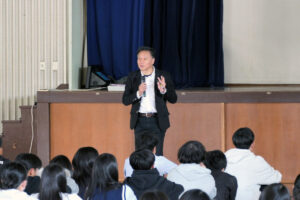 去る4月16日(木)、本校2年生全員を対象に、関西学院大学国際学部教授の關谷先生をはじめ4名の外部講師をお招きして「探究学習とは何か、探究におけるAIとの効果的な対話」というテーマで探究応用ワークショップ AI講演会を実施しました。