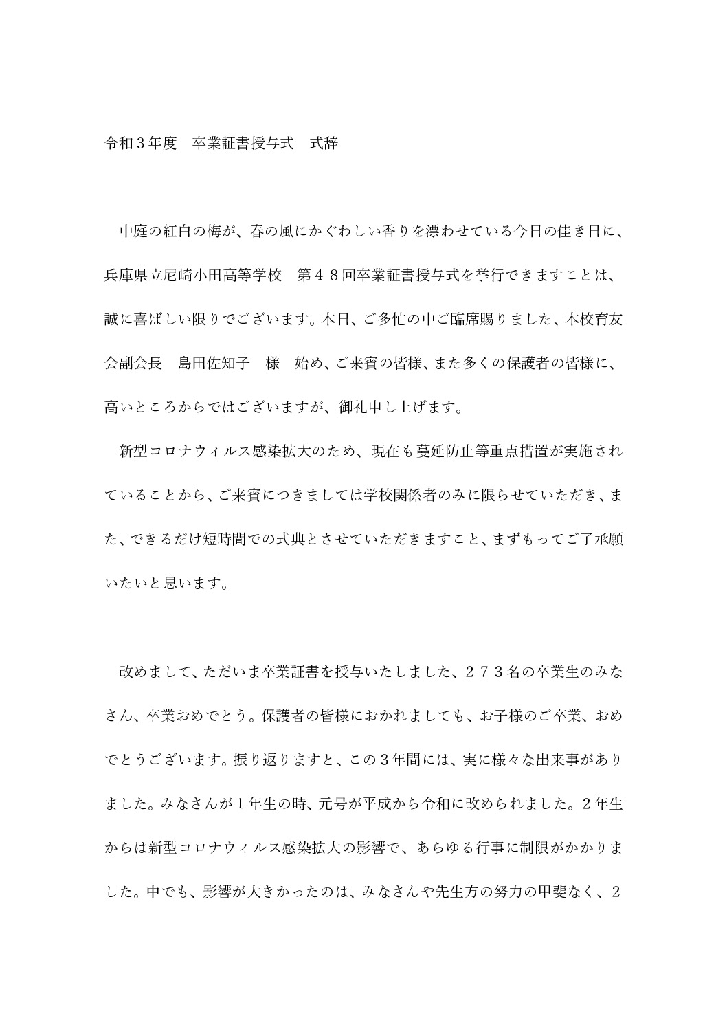 学校長より 人権講演会を行いました 投稿日: 2022年10月12日2022年10月12日 投稿者: 尼崎小田高校 令和4年度 2学期始業式 学校長挨拶 投稿日: 2022年9月1日2022年12月30日 投稿者: 尼崎小田高校 令和4年度生徒手帳および本校HPの訂正について 投稿日: 2022年7月5日2022年7月5日 投稿者: 尼崎小田高校 令和4年度 学校長あいさつ 投稿日: 2022年4月1日2022年4月5日 投稿者: 尼崎小田高校 令和3年度 3学期終業式 校長講話 投稿日: 2022年3月23日 投稿者: 尼崎小田高校 第48回 卒業式 学校長式辞 投稿日: 2022年3月1日2022年3月1日 投稿者: 尼崎小田高校 令和3年度 3学期始業式 校長講話 投稿日: 2022年1月11日2022年1月11日 投稿者: 尼崎小田高校 令和3年度 2学期終業式 校長講話 投稿日: 2021年12月24日 投稿者: 尼崎小田高校 兵庫県立尼崎小田高等学校 創立50周年記念式典 学校長式辞 投稿日: 2021年11月3日2021年11月15日 投稿者: salatsystem 令和3年度 1学期終業式 校長講話 投稿日: 2021年7月20日2021年10月29日 投稿者: salatsystem 投稿ナビゲーション